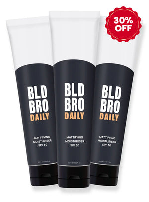 Awarded 'Best for Bald' by Men's Health, BLD BRO Daily 30 is your go-to SPF 30 matte gel moisturiser for everyday use. It hydrates, protects against harmful UVA/UVB rays, controls shine, and absorbs fast, leaving zero residue for a clean, confident look.